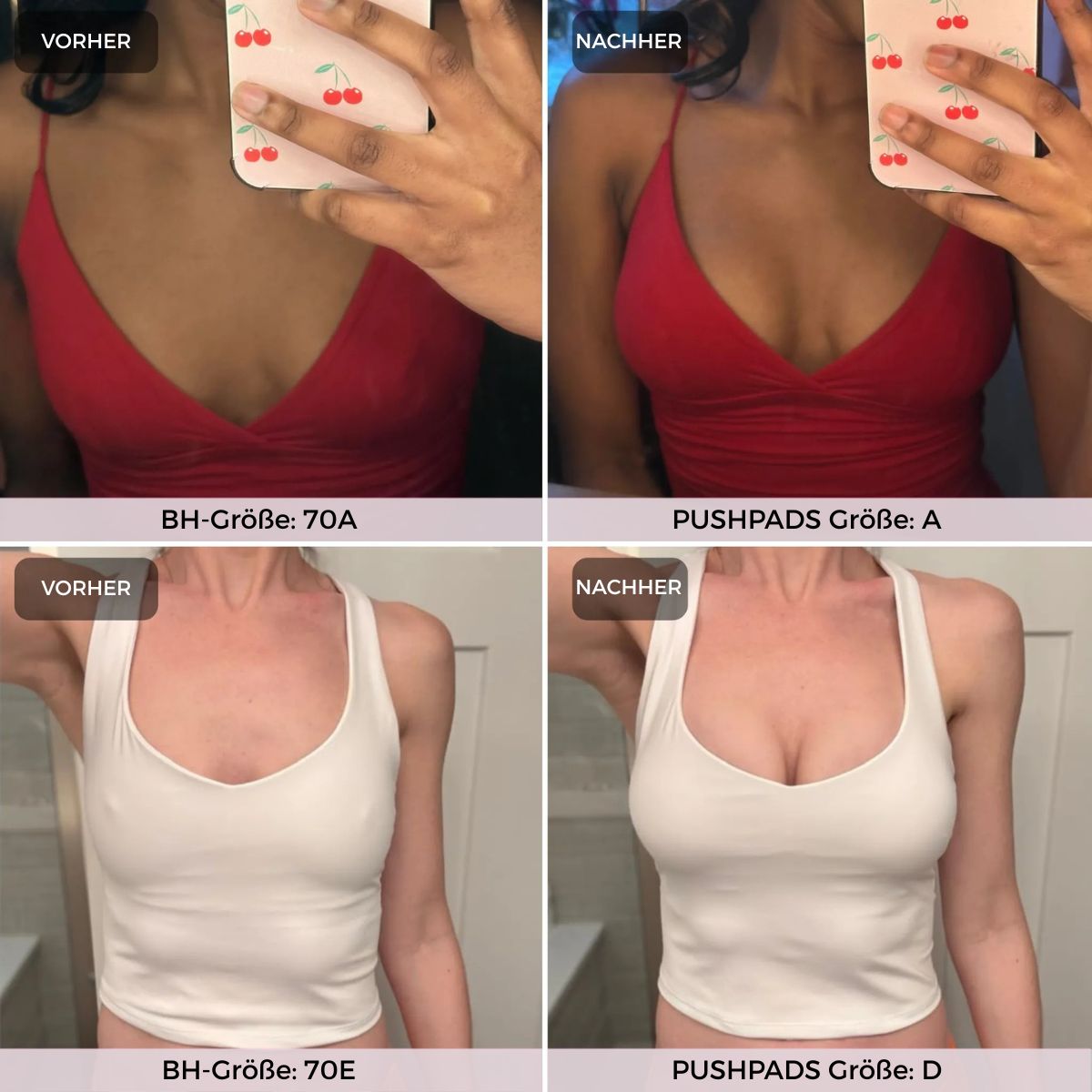 Absolut! PushPads gibt es in verschiedenen Größen und sie passen sich flexibel deiner Brustform an – für kleine, mittlere und größere Oberweiten.