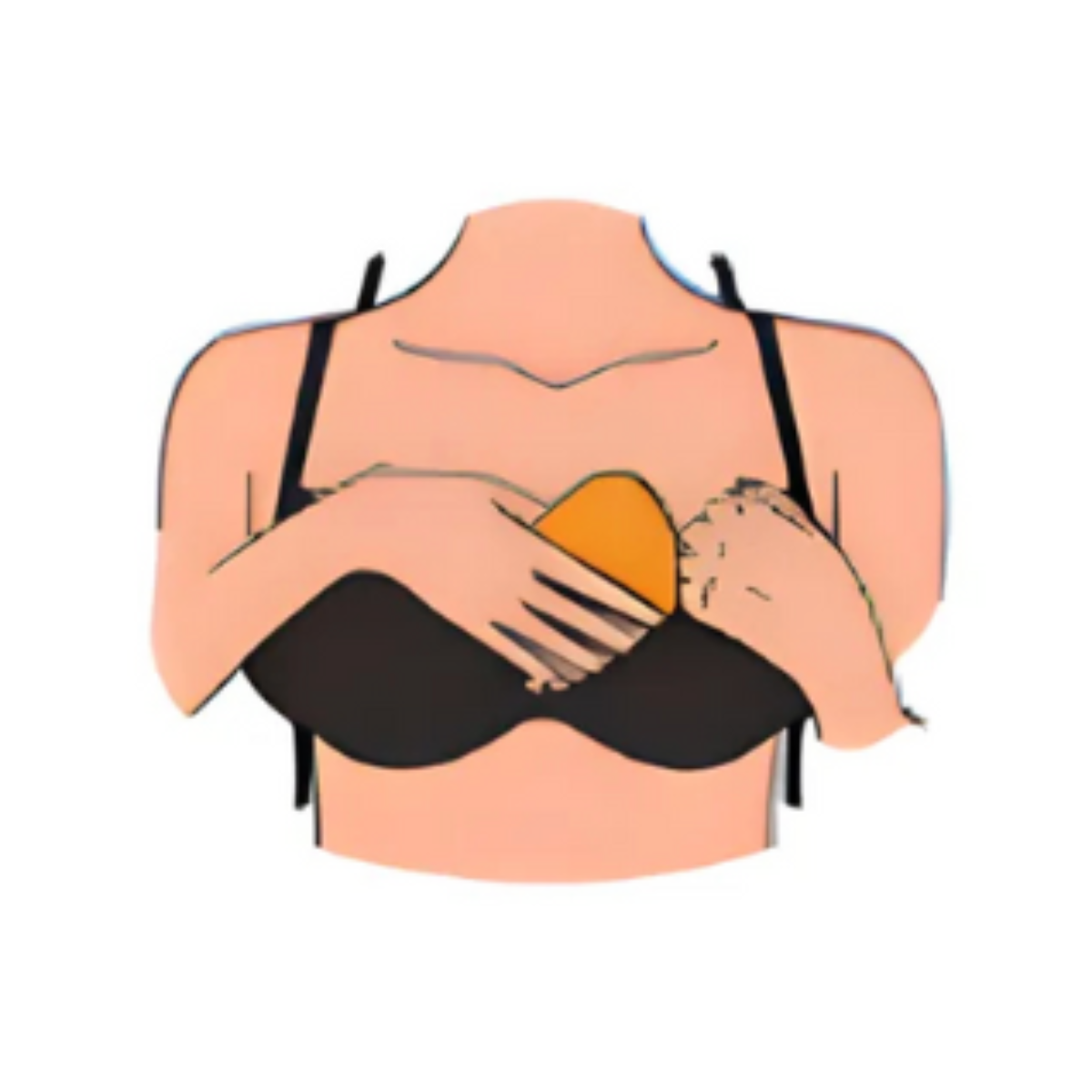 Während du die Brust anhebst, drücke das Pad auf die Brust und presse es fest, um einen sicheren Halt zu gewährleisten.